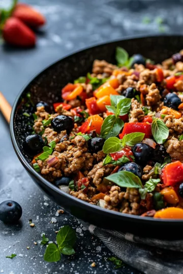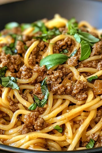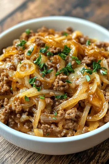ground beef egg roll in a bowl with Teriyaki Glaze