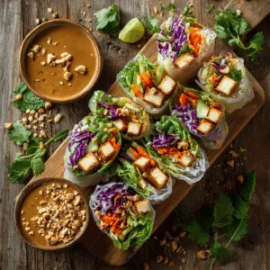 The whole deal takes summer rolls up a notch from just light and fresh to something that feels layered. You still get that cool snap of rice paper against your lips but then your teeth hit that crispy tofu that is all about Maillard browning. And the peanut sauce sings because it was coaxed along with a slow simmer till it got velvety. I promise it is not over the top or tricky, but every bite feels like a little celebration of crisp and creamy.