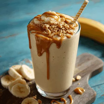 When i set three glasses full of Peanut Butter Banana Smoothie on the wooden table i always place a small linen napkin at each spot. It makes it feel like a little celebration even if it is only Tuesday. I sometimes tuck a sprig of mint on the rim or a few peanut halves on top so each glass looks like a gift.