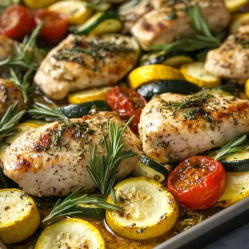 Slice the remaining lemon into thin rounds and lay them on top of the chicken and vegetables. This gives an extra pop of citrus while it bakes.