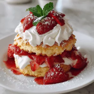 To assemble, slice the shortcakes in half horizontally. Layer the bottom half with a generous spoonful of macerated strawberries and top with whipped cream. Place the top half of the shortcake on to finish.